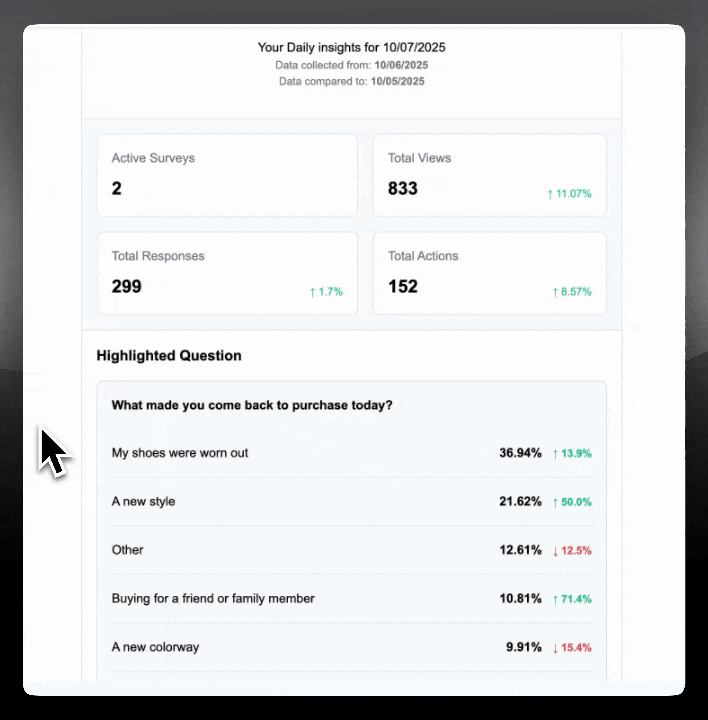 We designed it to be a simple way to keep your survey insights front and center, without you having to dig for them.